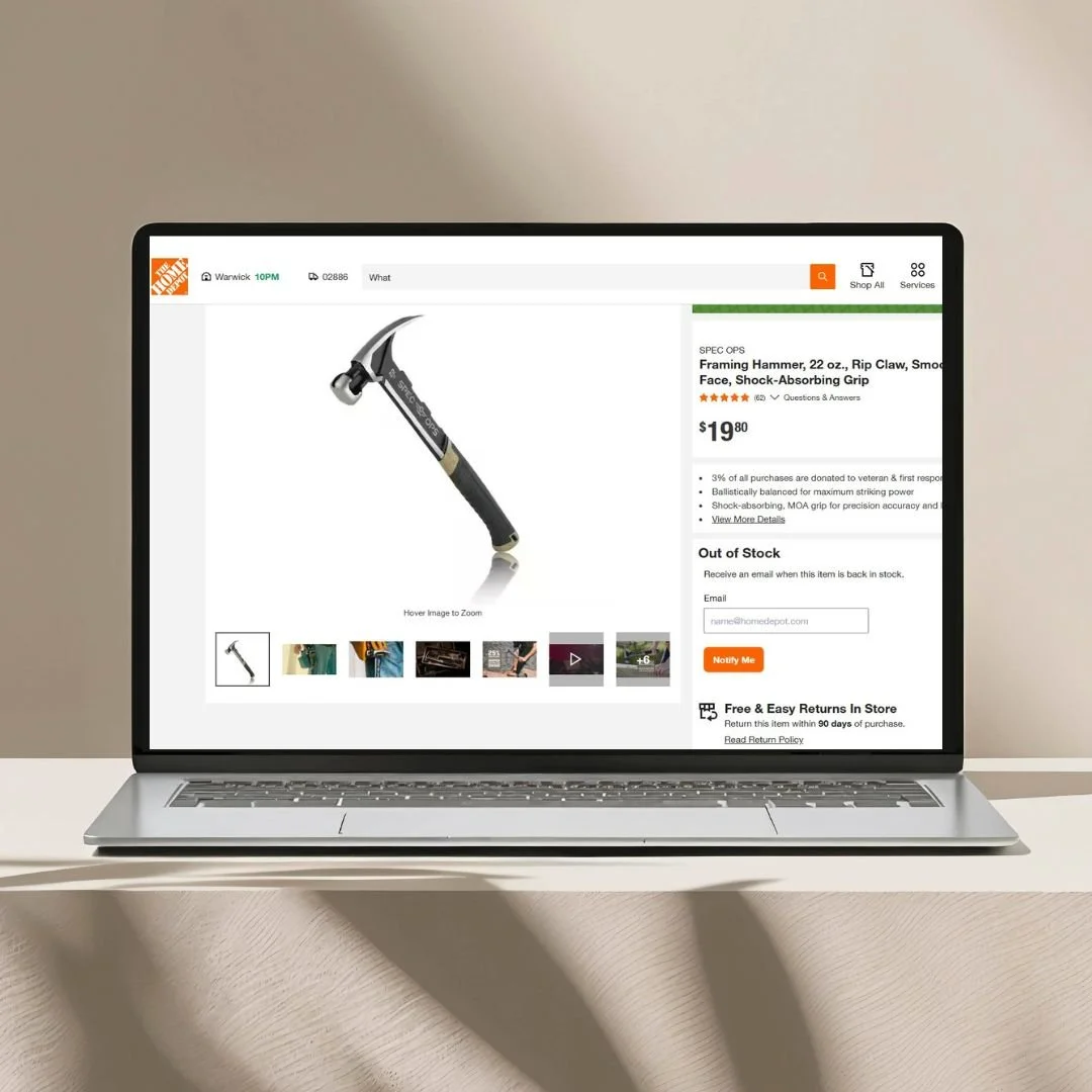 Spearheaded the product marketing and content strategy for the launch of Spec Ops Tools on Home Depot, building a high-performing product catalog optimized for search visibility, engagement, and conversion.
